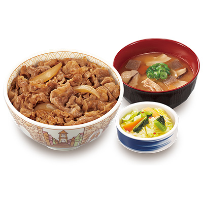 ファミリーやグループのお客様にも気軽にご利用いただけるよう、テーブル席を設置し、手軽な価格と手際よいスピード、元気なサービスで、365日、おいしい牛丼を提供しています。Take out できます!!