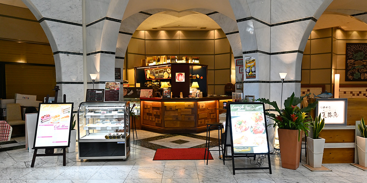 広々としたアトリウムに面している開放的な空間のViVO。自家製ブレンドコーヒーはモーニングタイムは230円でご用意しております。アットホームな雰囲気も楽しめるソファ席のご用意もあります。それぞれのご用途に合わせてお気軽にご利用ください。
